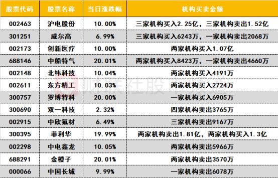 卖出方面,PEEK材料概念股中欣氟材遭机构卖出超9000万;菲利华遭机构卖出1.81亿,同时获机构买入1.3亿。